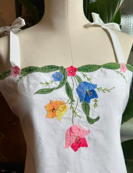 Tender and thoughtfully made, this camisole features hand-stitched floral appliqué that blooms across the fabric like pressed flowers. SOLD ![]() |
