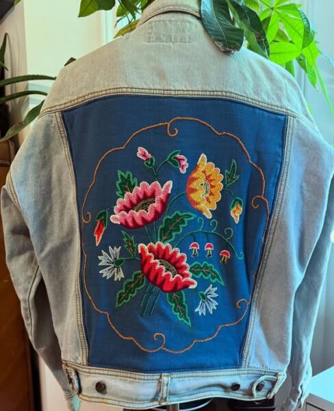A jean jacket detailed with a 1970s chain-stitched embroidered appliqué. Vibrant stitching and raised texture highlight the craftsmanship and vintage style. SOLD ![]() |